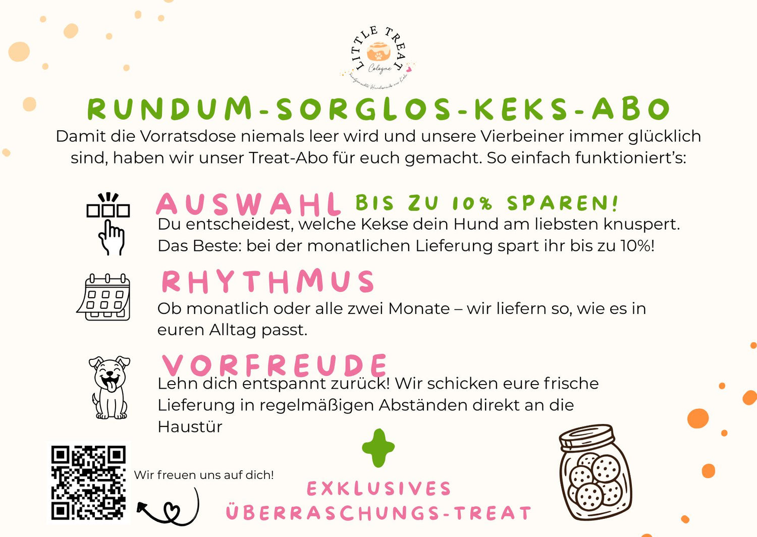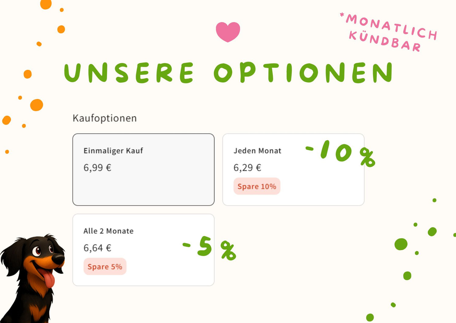 Nein! Wir wollen, dass du bleibst, weil du unsere Treats liebst, nicht wegen eines Vertrags. Du kannst dein Abo jederzeit monatlich kündigen.